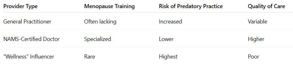 Women in midlife face unique healthcare challenges, yet much of the mainstream medical system remains ill-equipped to address their complex needs—especially regarding menopause care. Many providers lack adequate training, while some exploit this knowledge gap with predatory practices. It is crucial for women to seek out practitioners credentialed in menopause management to ensure safe, effective, and evidence-based care.